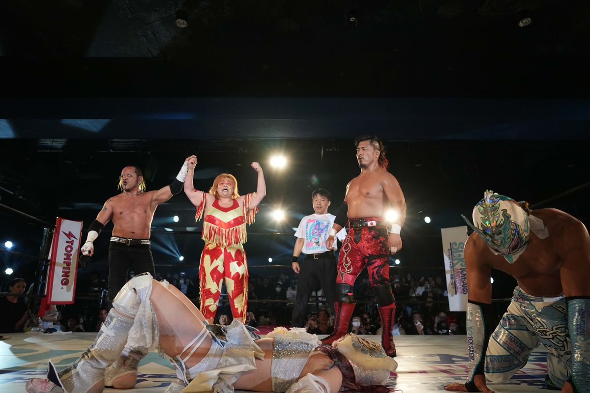メインイベントでは、キッドが新日本プロレスのエル・デスペラード、ドラゴンゲートのドラゴン・キッドと“キッちゃんファミリー”を結成。プロレスラーになるきっかけとなった憧れの存在であるワールド女子プロレス・ディアナの井上京子、そしてプロレスリングFREEDOMSの葛西純、新日本プロレスの鷹木信悟という、あまりにも危険なトリオと激突。