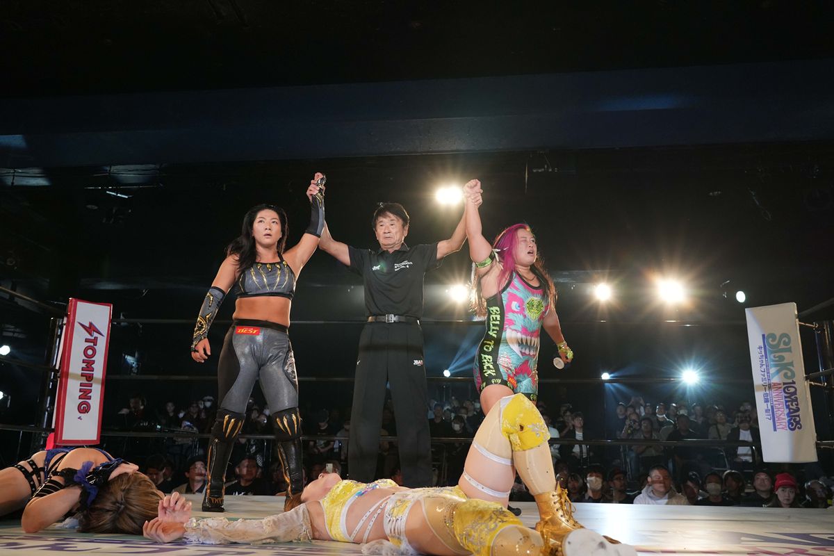 【スターダム】SLK10周年興行で仙女最強タッグが躍動!橋本&岩田が、なつぽい&安納、小波&琉悪夏を破り“外敵”の強さ見せつける