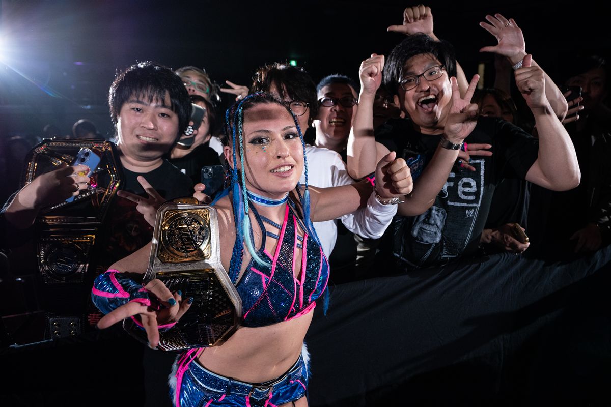 前日のベイリー、ライラ・ヴァルキュリアとの3WAY戦、そしてこの日のロクサーヌ戦と、凱旋ロードで二度の防衛を果たしたジュリア。