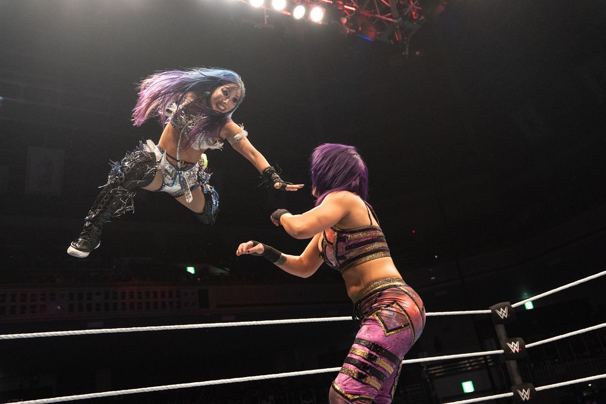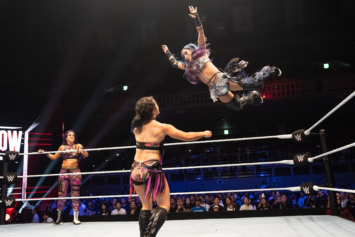 世界最大のプロレス団体・WWEの日本公演「WWEスーパーショージャパン」2日目(10月18日、東京・両国国技館)で、“カブキ・ウォリアーズ”のアスカとカイリ・セインが、ベイリー&ライラ・ヴァルキュリア組と激突。