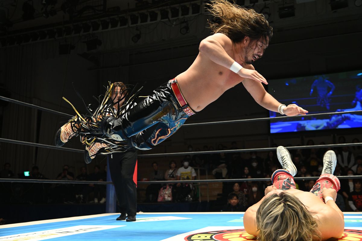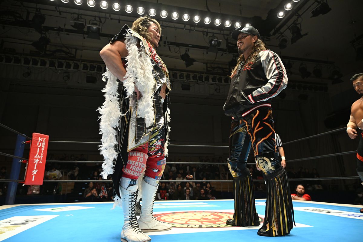 その第1試合で、11月2日に岐阜で行われるIWGP GLOBALヘビー級選手権試合(王者・辻陽太 vs 挑戦者・棚橋弘至)の前哨戦タッグマッチが開催された。