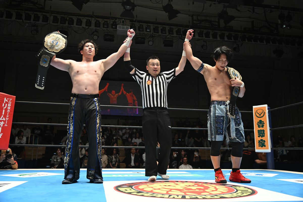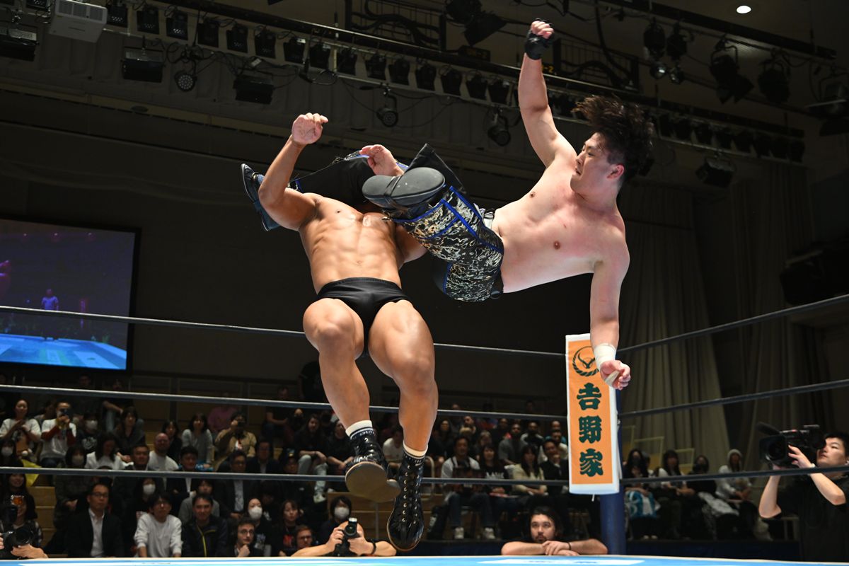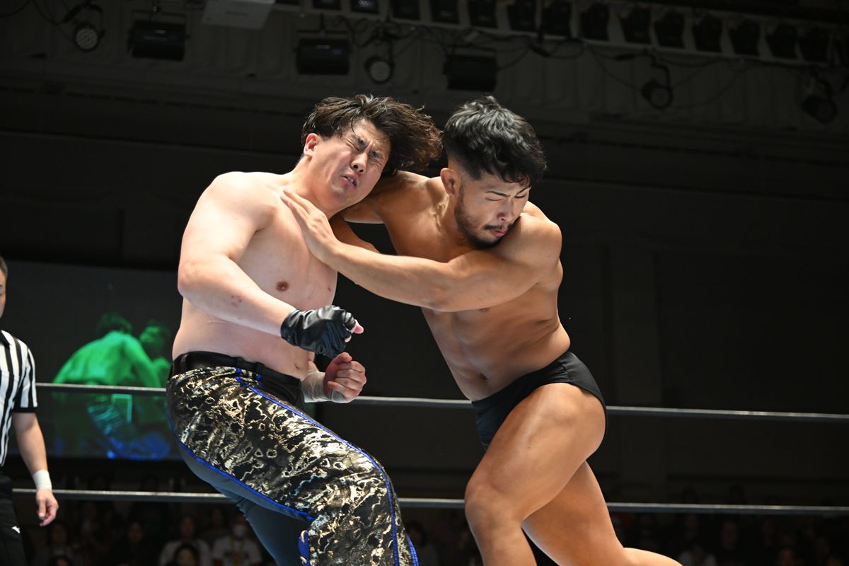 Aブロック公式戦で、YOH&マスター・ワトの生え抜きコンビが、クラーク・コナーズ&永井大貴組を破り、開幕2連勝を飾った。