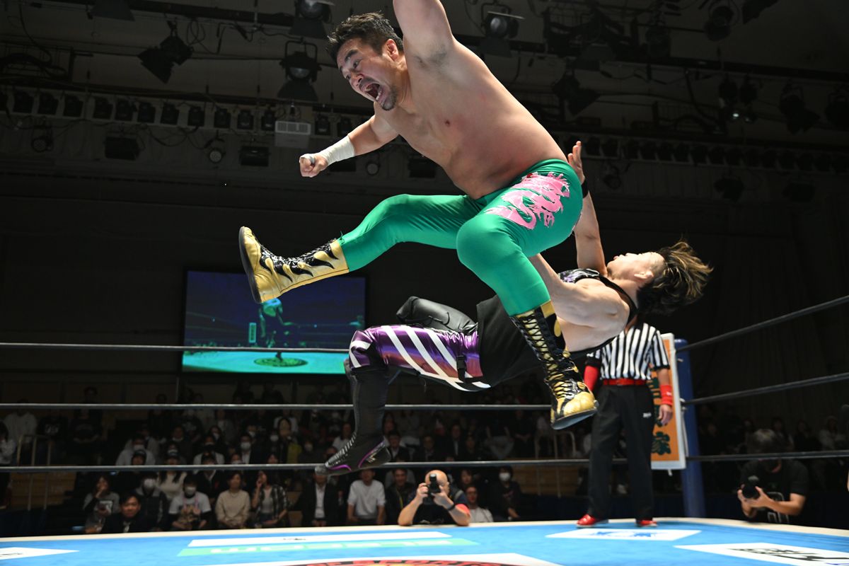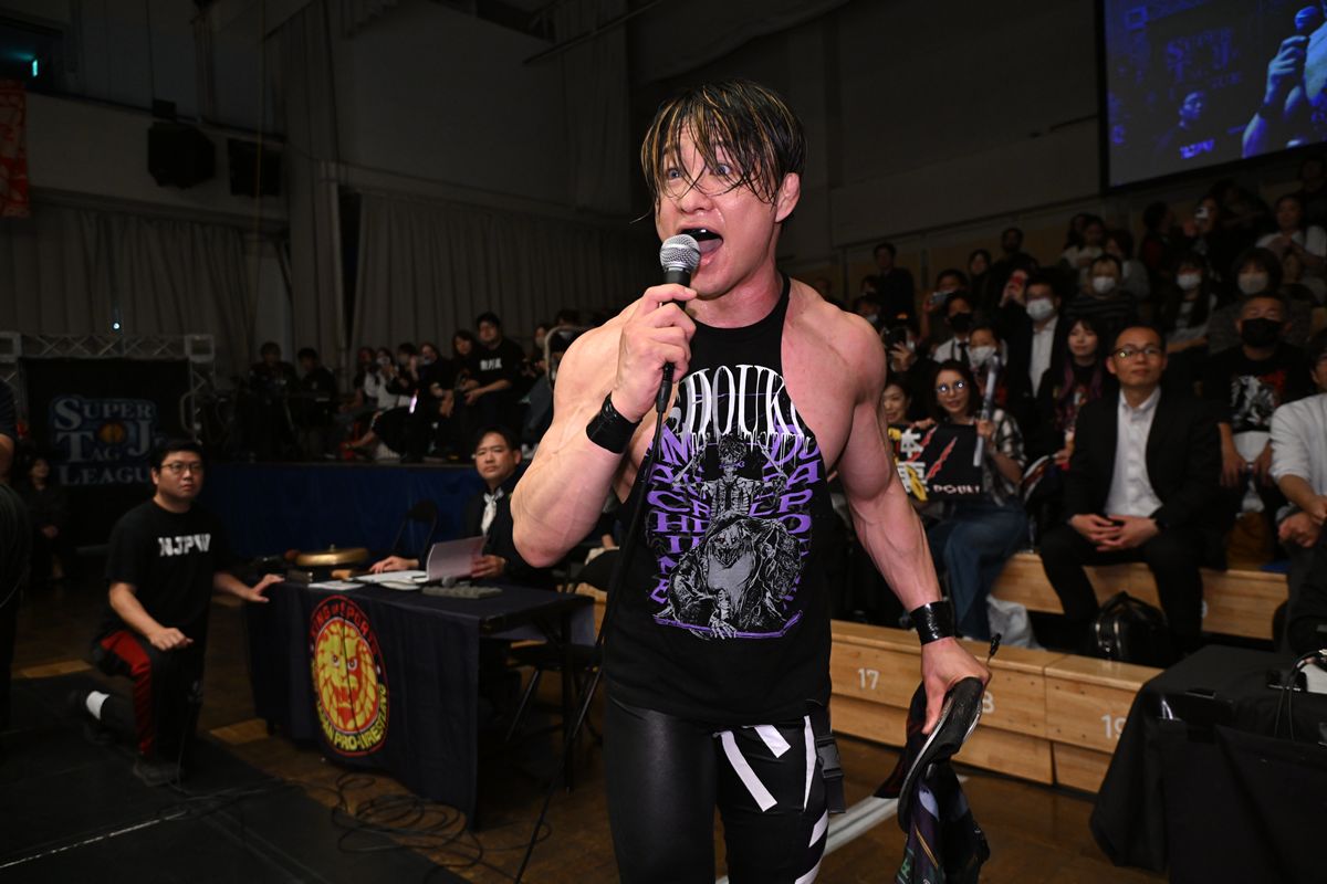メインイベントのAブロック公式戦で、IWGPジュニアタッグ&ヘビー級の二冠王DOUKIと、SHOによるH.O.T.コンビが、田口隆祐&ドラゴン・ダイヤ組を破り、開幕2連勝。試合後には「このリーグ戦、やる意味あんのか?」と、その圧倒的な“2強”体制を宣言した。