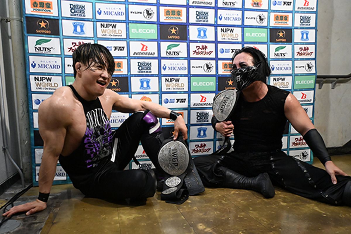 さらに、二人の矛先は、翌日の公式戦で対戦する高橋ヒロム&外道組へと向けられた。DOUKIは「オイ、高橋ヒロム&外道組。なんだ、話題作りたかったのか?オイ、そんなタッグでな、最強の王者である俺たちの前に立っていいと思うか?」と、その即席ぶりを嘲笑。