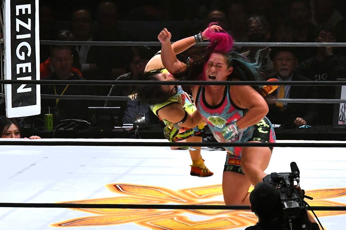 橋本は、コブラツイスト、俵返し、そして投げっぱなしのジャーマンスープレックスと、プロレスの“力”でスーパールーキーを圧倒。