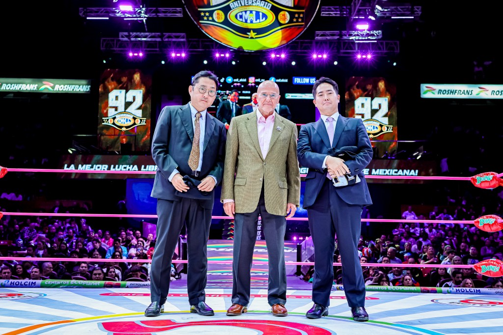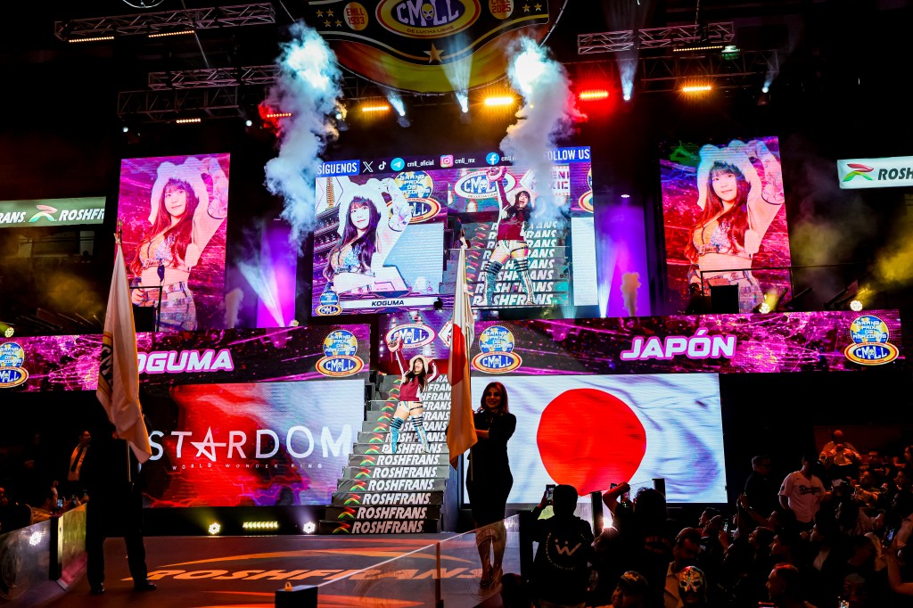 大会オープニングにはサルバドール・ルテロCMLL社長、スターダム・岡田社長、CMLL女子部日本エージェントの泉井弘之介氏(LADYSRING)がリングに上がり、CMLLとスターダムにおける提携の挨拶を行った。