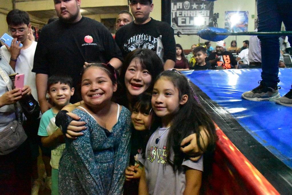 試合はFWCのタッグでCMLLのプリンセサ・スヘイ、地元の選手であるクイーンパンテルと対戦。ローカルインディーならではの光景で子どもたちがリングサイドで試合を見守る中、FMCは大の人気者に。