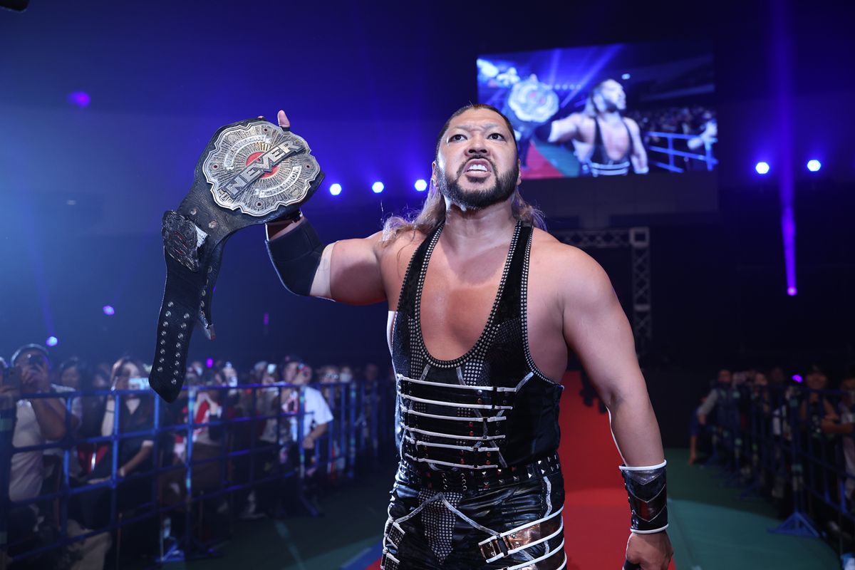 試合後もH.O.T.の暴挙は続く。金丸がYOHをウィスキー瓶で殴打し、EVILは矢野に急所攻撃を見舞う。NEVER6人タッグのベルト3本をリングに並べたEVILはマイクを握り、挑戦を宣言した。