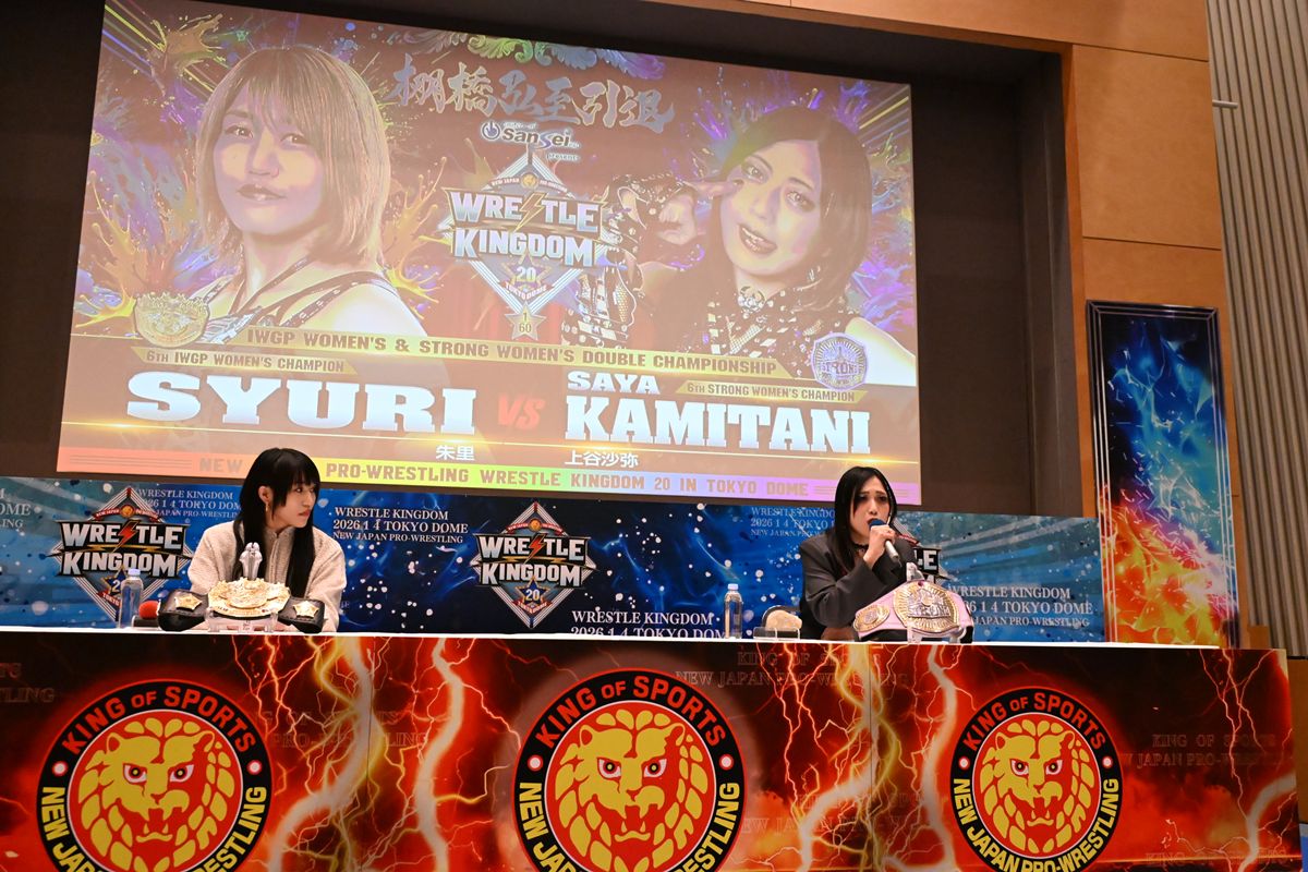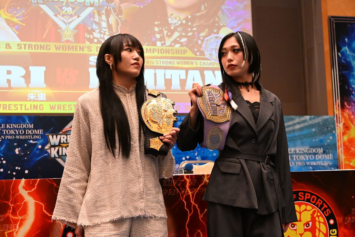新日本プロレスは11月4日、東京・六本木のテレビ朝日で来年1月4日に東京ドームで開催される『WRESTLE KINGDOM 20 in 東京ドーム 棚橋弘至引退大会』の記者会見を行い、女子部門のダブルタイトル戦「IWGP女子&STRONG女子ダブル選手権試合 朱里vs上谷沙弥」を正式発表した。