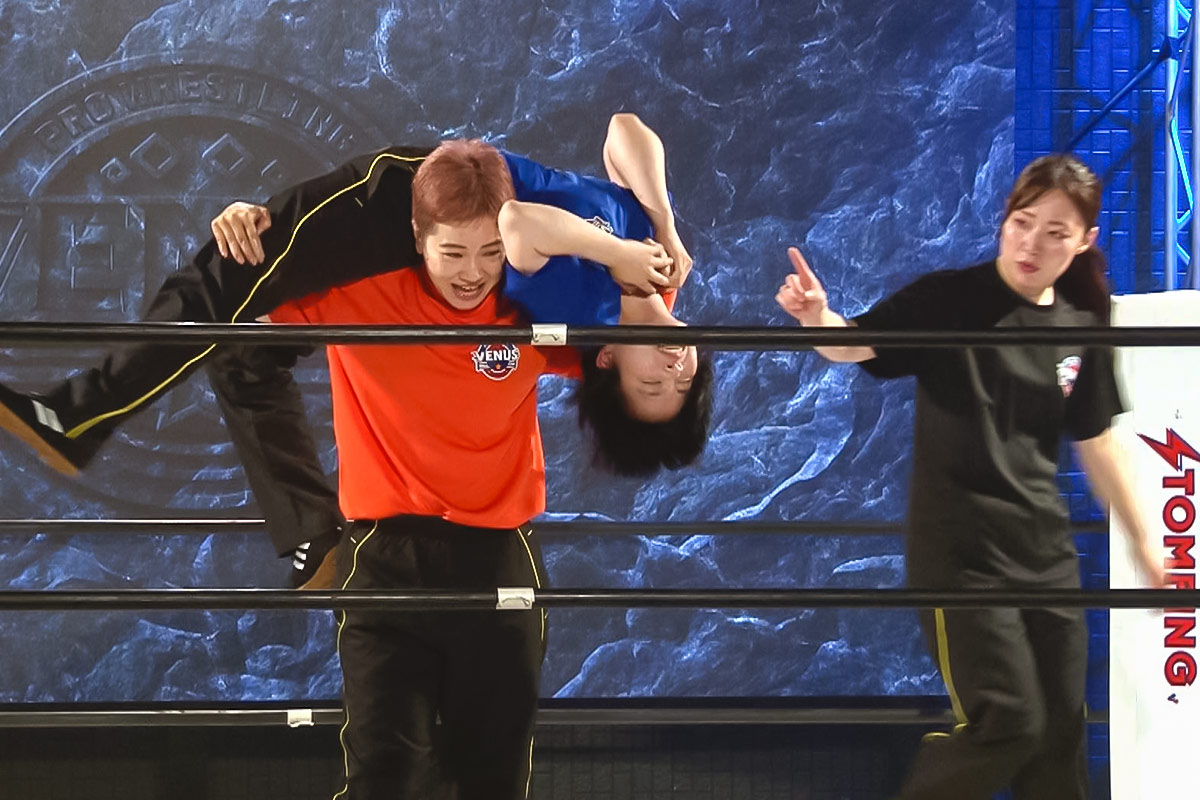 「プロレスを題材とするのが初めてで、お話をいただいたときはすごくうれしかったですね。それでいて、演技指導でリングに上がるときには緊張しました。土足で上がっていいものかとか(苦笑)。また今回はプロレス団体旗揚げをめざすセミドキュメンタリー形式ということで、その部分もいつもとは違って、最初は戸惑いましたね。ただ、物語が進んでいくなかで登場人物の育っていく姿をリアルに見せられるというのがすごくおもしろくて、作家とも話を進めながらストーリーを考えていくことになります。成長具合というのはそれぞれに差が出てくるものなんですけど、見ていて明らかに身体の動きが変わっていくのがわかります。第1話では、道場でやっている練習を延々とお客さんの前で見せたんですね。受け身大丈夫かなと思いながら見ていると、だんだんそれができるようになっていくんですよ。また、実際に劇中でリングにロープを張る設営作業を物語に組み込んで見せたり。演者の中にはプロレスラーの方もいて、だんだん芝居がうまくなっていくんですよね。なので、キャラクターとしての成長も感じます。たとえば、みなみ飛香さん。本人は演技が苦手と言ってますけど、毎回毎回よくなってますよ。たとえば、本人が納得できないというセリフをマイクを持たせて言わせてみたら、すごくうまくできたりとか。俳優が言葉をたくさん使ってやることをレスラーはチョップ一発で表現できたり。やっぱり、プロレスラーってリングに立つと画になる。そこがプロレスラーのすごいところだなと、あらためて思いましたね」