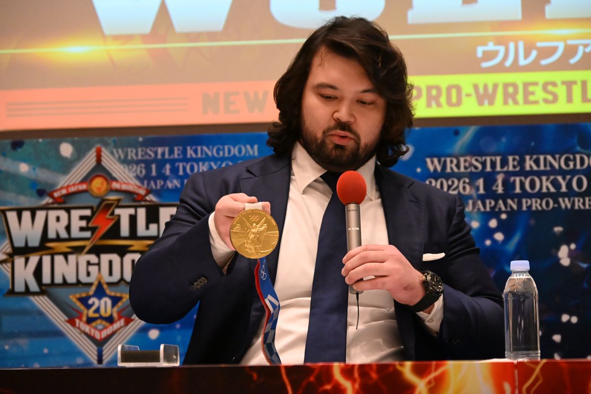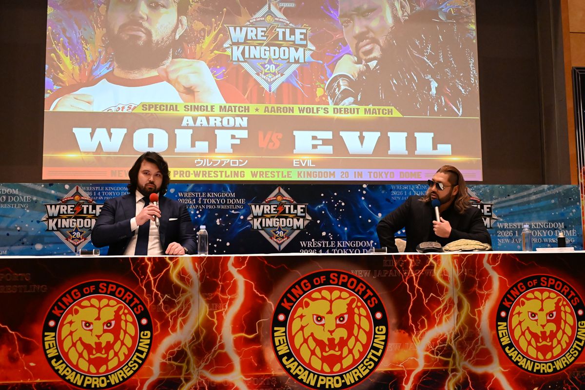 新日本プロレスは11月4日、テレビ朝日で来年1月4日の東京ドーム大会「WRESTLE KINGDOM 20」の記者会見を行い、柔道金メダリストのウルフアロンのデビュー戦が、NEVER無差別級選手権試合として行われることが、王者EVILから一方的に発表された。