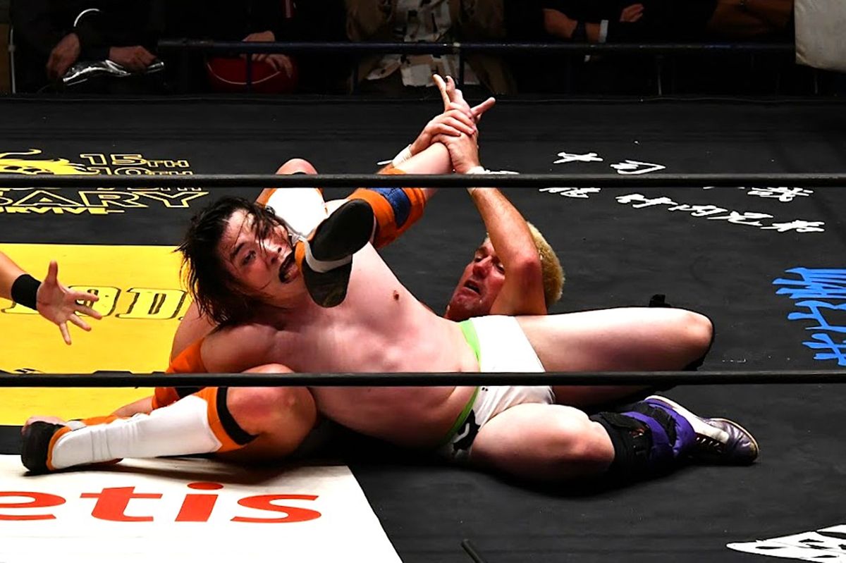 矢野がザックの左足を取りにいったところを、ザックが瞬時に切り返し、ジャパニーズレッグロールクラッチホールドで押さえ込み、3カウントを奪取した。