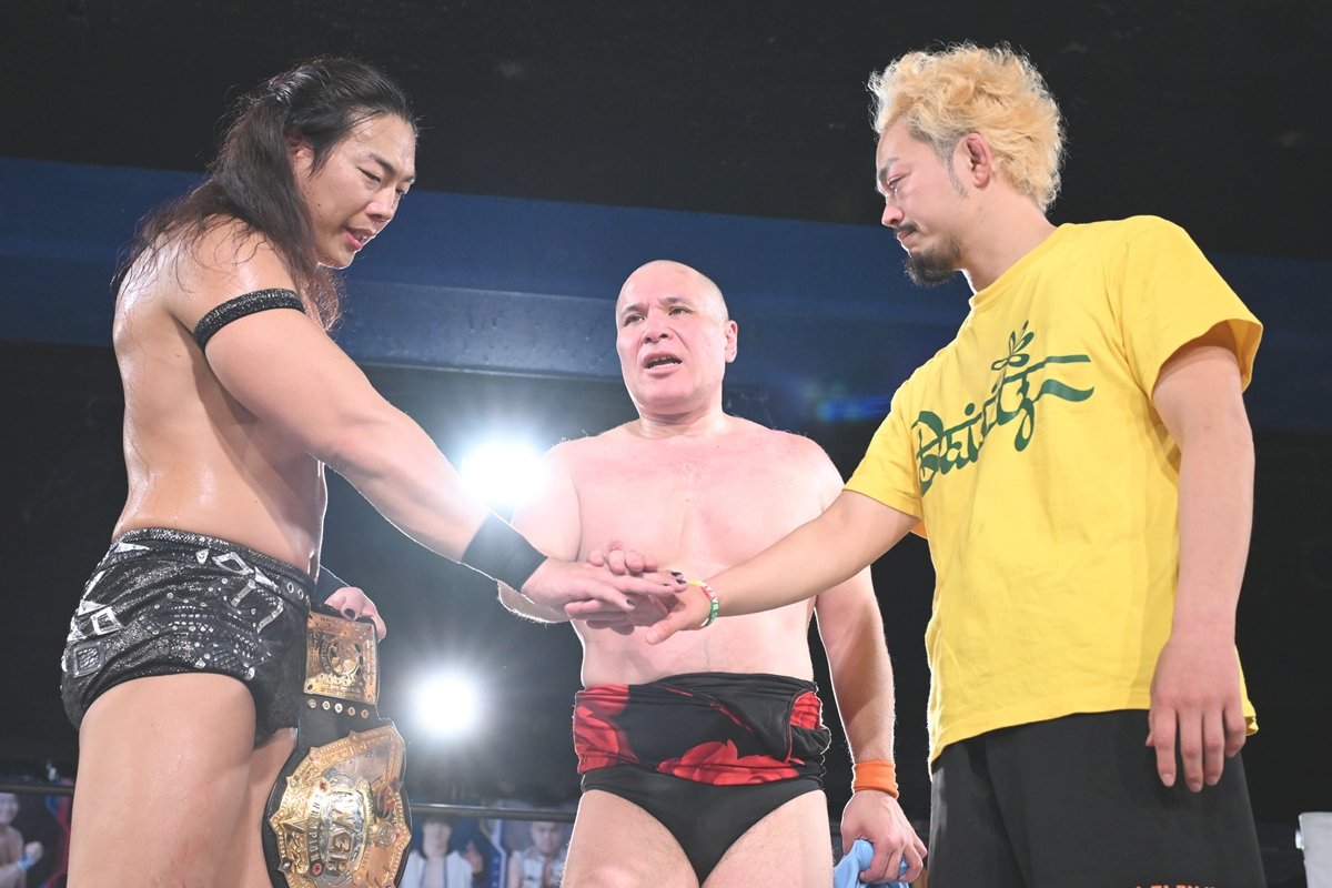 最後にTAKESHITAは「今日の1試合もまた糧に、IWGP王者として、イッテンヨン・東京ドームも戦うし。それは全部、DDT、特に本多さん。あなたが教えてくれたプロレスを愛するということを、これからも大事に胸に戦っていきます」と締めくくった。