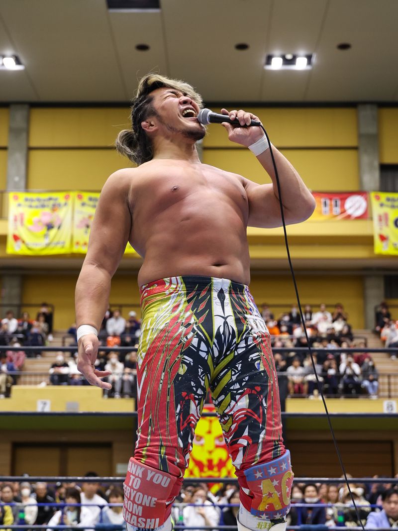 棚橋がエアギターで安城のファンを熱狂させ、「愛してまーす!」を叫んだ直後であった。