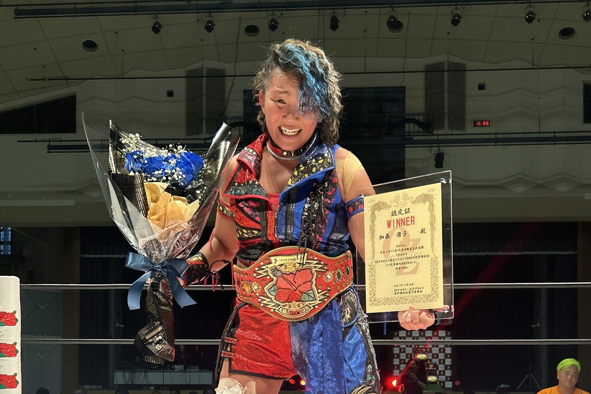 【OZアカミー】加藤園子、OZラストマッチでパイオニア王座奪取! 翔、AKINOを“2人まとめて”丸め込み有終の美