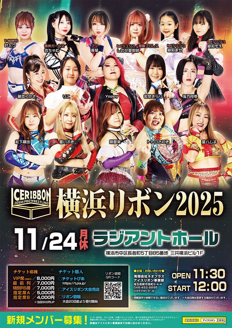 女子プロレス団体アイスリボンが、11月24日(月・祝)に神奈川・ラジアントホールで開催する「横浜リボン2025・Nov.」の全対戦カードを発表。