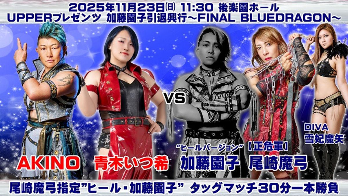 最初で最後となるヒール・加藤園子は、尾崎とタッグを組み、AKINO&青木いつ希組と対戦する。