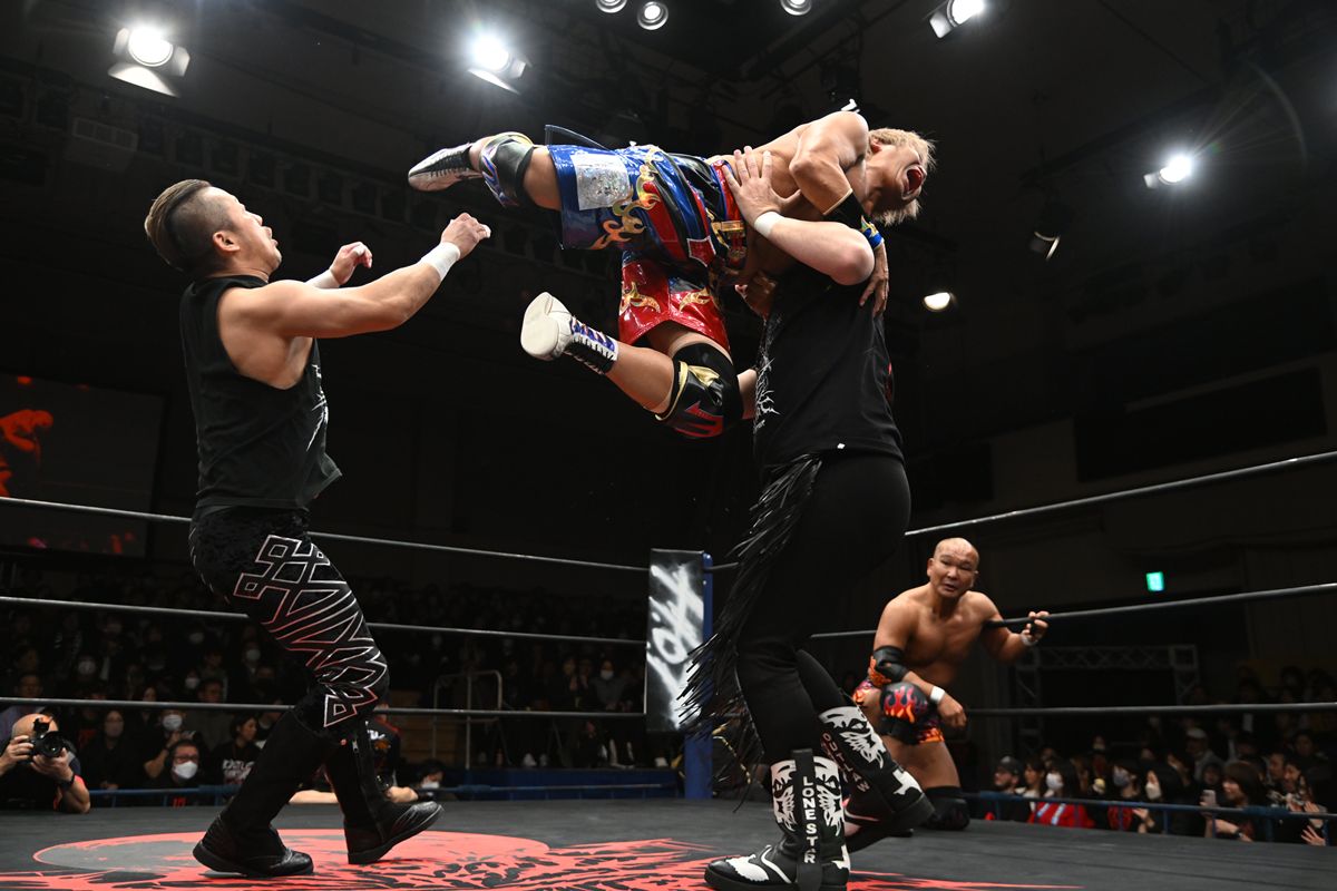 石井の盟友であり、かつてZERO1マットで田中や日高の世話になったというタイチが、約20年ぶりに恩人たちとタッグを結成するサプライズに後楽園ホールが沸いた。