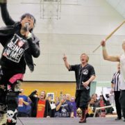 裕二郎がEVILにローブローを見舞うと、背後から東郷が裕二郎をレフェリーに激突させ、すかさずローブローで報復。