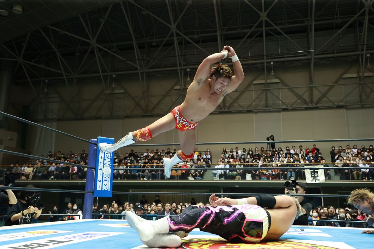 ファンタズモも躍動した。上村にムーンサルトアタック、海野に場外プランチャ、さらにスワンダイブ式セントーンとライオンサルトを連発し、新世代タッグを翻弄。棚橋とのダブルテキサスクローバーホールドの共演も見せ、勝利への執念を燃やした。