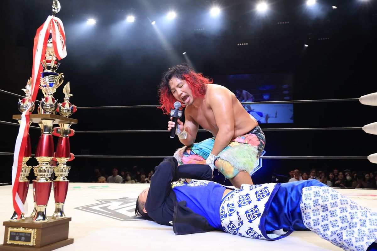 「ああ、ああ、ああ、気が済んだぜ。リング上で言った通りだ。俺は何も間違ったこと言ってないんだよ。ノアジュニアを味わい尽くして、味わい尽くしすぎちゃって、結局、ノアジュニアのベルトも獲り、ノアジュニアGPまで制す。もうこれ以上にあるんですか? ジュニアトーナメントに出てた人間が勝ち上がれなかった。それで文句言うのは違うだろ。誰も俺に何も言う資格はない」