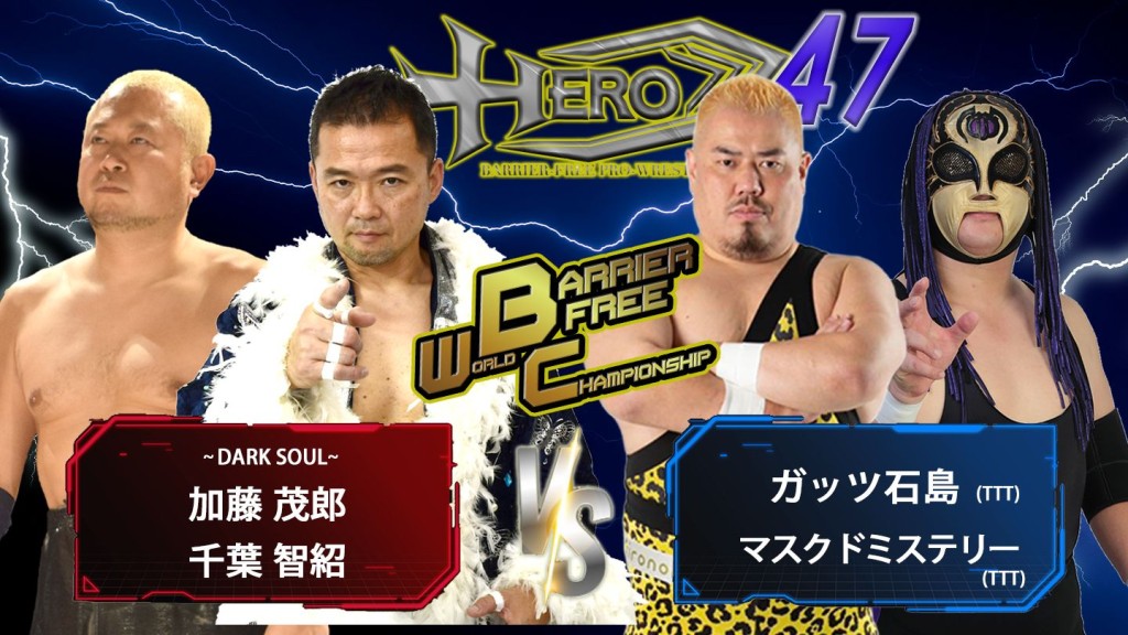<王者組>加藤茂郎&千葉智紹 vs ガッツ石島&マスクドミステリー<挑戦者組>