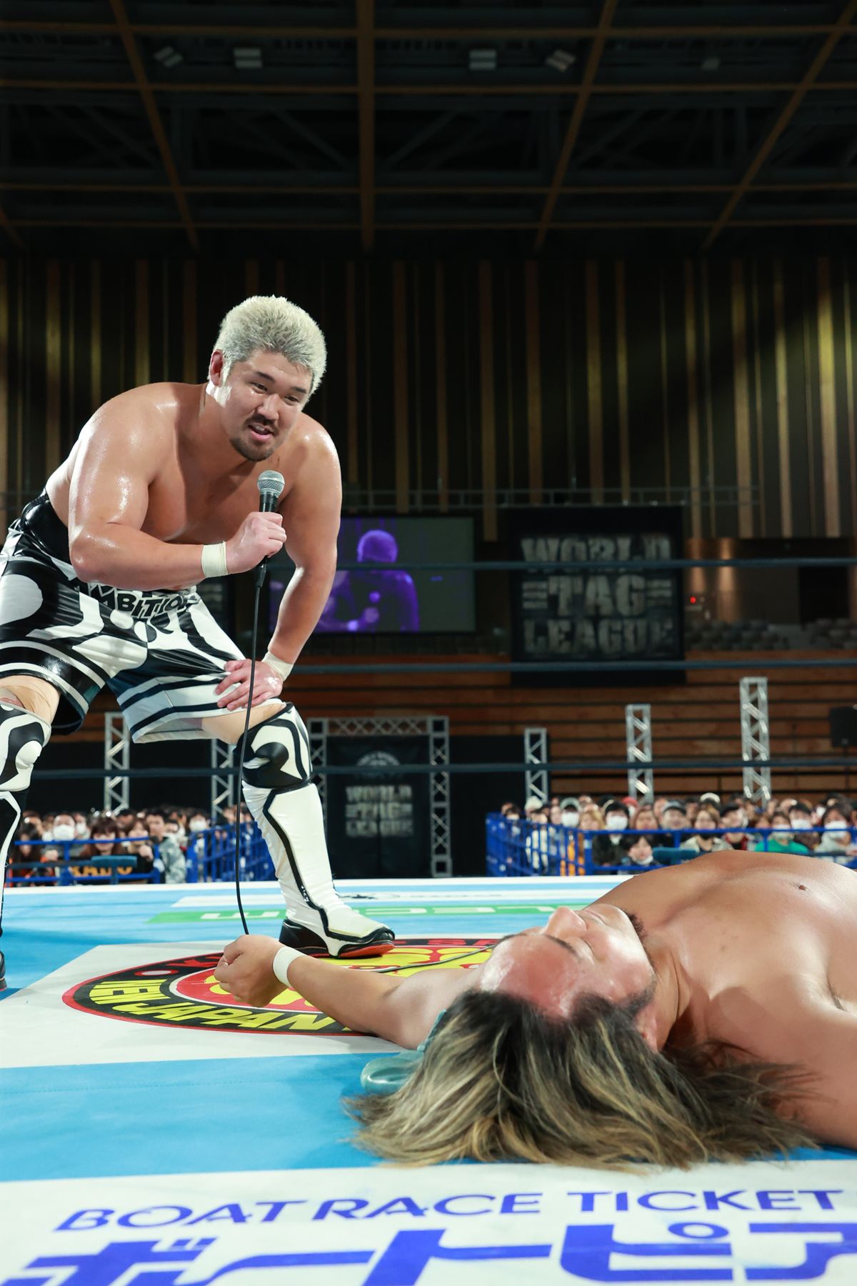 最後は「残りのタッグリーグ、全勝で優勝だ!」と宣言し、パートナーのOSKARと共に花道を引き上げた。