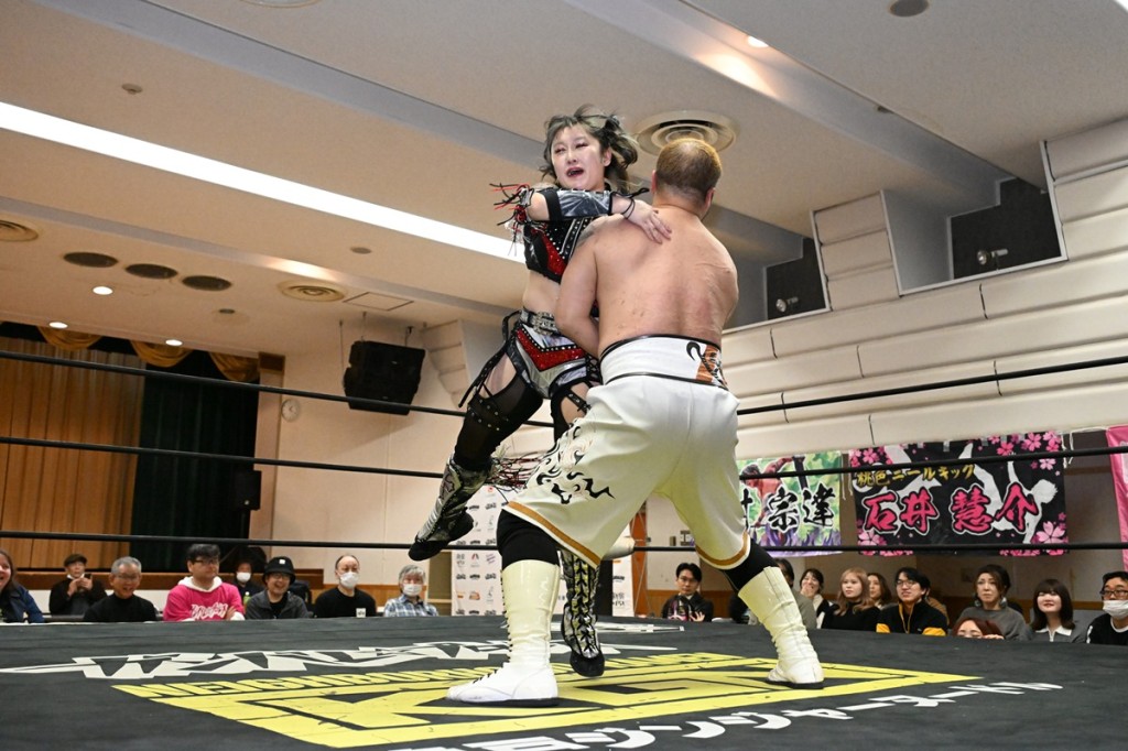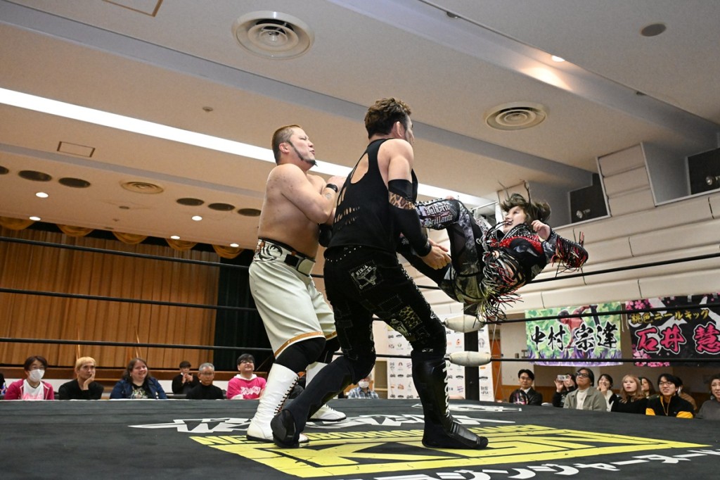 ガンバレ☆プロレスが11月29日、東京・高島平区民館で「ウィッカーマン2025」を開催した。スピリット・オブ・ガンバレ(SOG)世界タッグ王者組の中津良太&塚本拓海(BASARA)が勝村周一朗&YuuRIの男女混成コンビを退け3度目の防衛に成功。学生プロレス時代からの盟友である今成夢人と冨永真一郎が12・27後楽園でベルト奪還に挑むことが決まった。