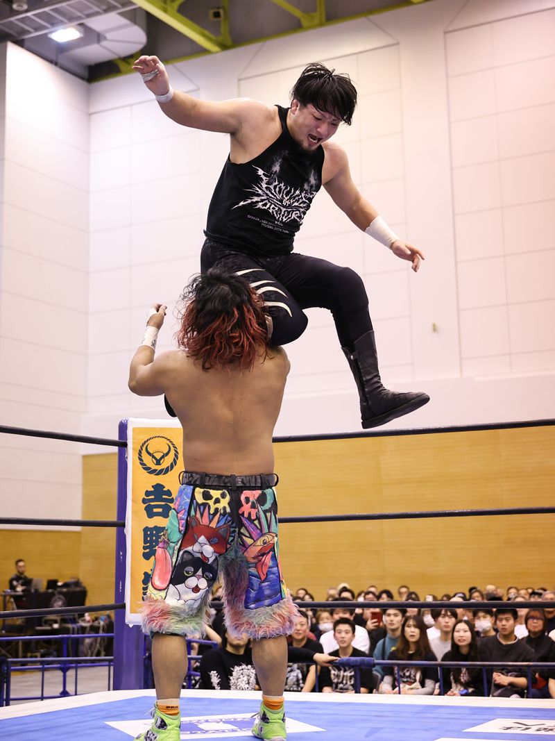 金丸、SHOがリングインし、総出でヒロムを襲撃。フィンレーが救出に入るも、金丸のウィスキーミストと角瓶攻撃に沈黙。