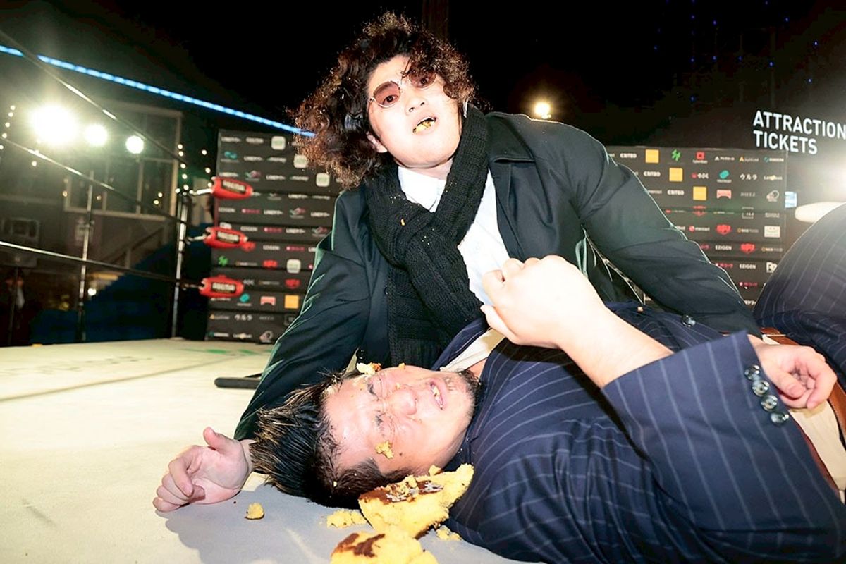 黒いコートとサングラスを装着し完全にヒールモードへ戻ったOZAWAは、ぐったりしたInamuraの顔面にカステラを押し付け、口へ無理やりねじ込む暴挙に出る。