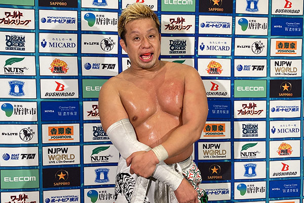 「俺とごっちゃん、毘沙門は新日本に限らず世界一最高のタッグだと思ってる。でも、今日はアイツらが上手を行ったよ。もう正直、俺たちの負けだよ。 でも俺たちは倒れてからが強えからな、オイ。こうやって負けた後、さらにさらに進化して凄みを増していく。だからこそ、次、また俺とごっちゃんが組んでリングに上がる時、楽しみにしとけよ。いいか」