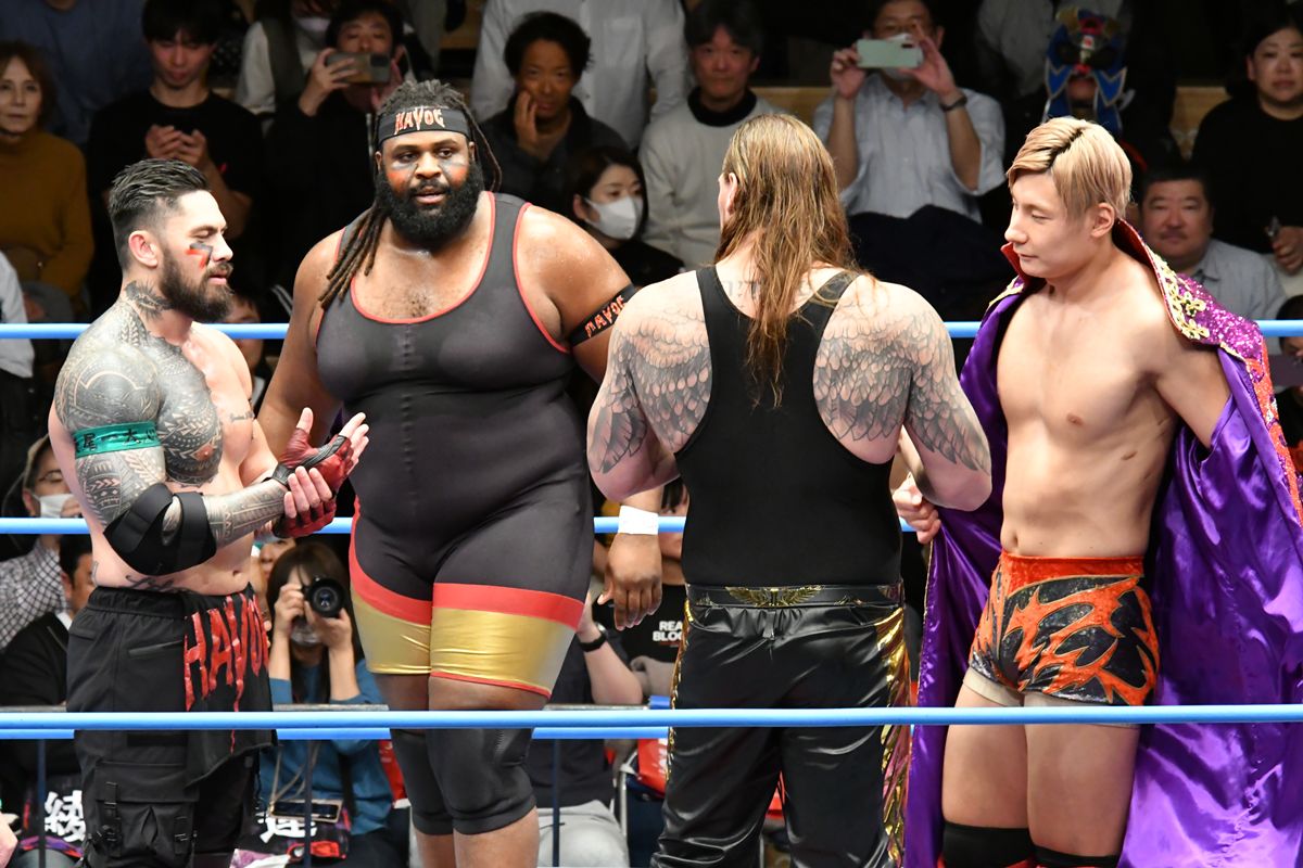 身長200センチの綾部と213センチのタロース、合計身長413センチを誇るタイタンズ・オブ・カラミティーに対し、HAVOCも196センチ・184キロのオデッセイ、188センチ・112キロのザイオンと、まさにスーパーヘビー級の怪獣大戦争の様相を呈した。