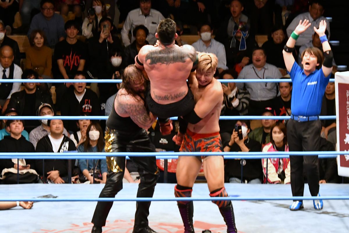 現タッグ王者から完璧な3カウントを奪取し、後楽園ホールを熱狂と「絶望」の渦に巻き込んだ。