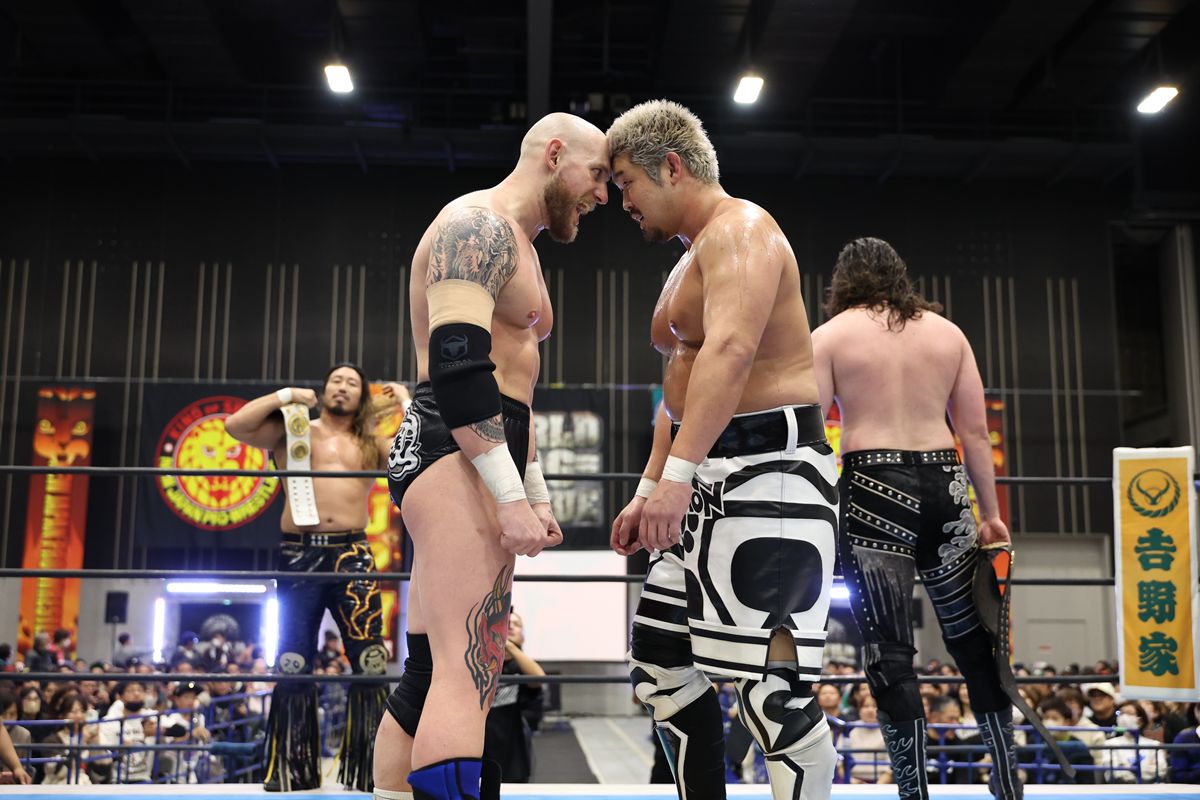 共闘関係にある無所属とBC WAR DOGSが敵味方に分かれる複雑な構図の中、焦点はやはり準決勝で対戦する辻&ゲイブ組と“Knock Out Brothers(K.O.B)”Yuto-Ice&OSKAR組の絡みであった。