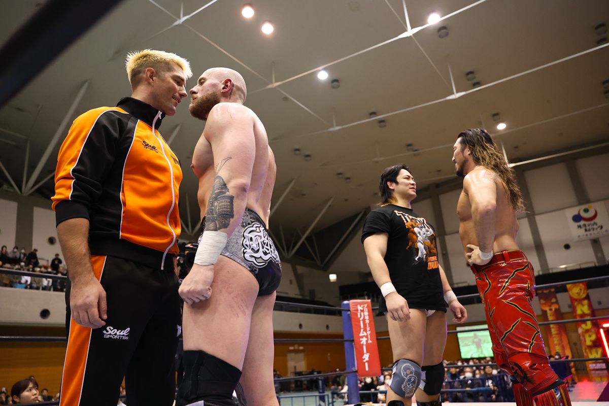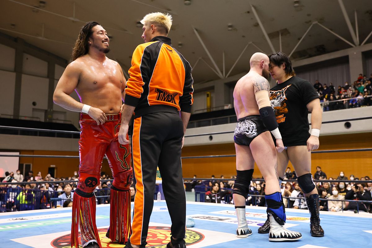 メインイベントの準決勝戦では、Aブロック2位の辻陽太&ゲイブ・キッド組と、Bブロック1位の現IWGPタッグ王者“Knock out brothers(K.O.B)”Yuto-Ice&OSKAR組が激突した。