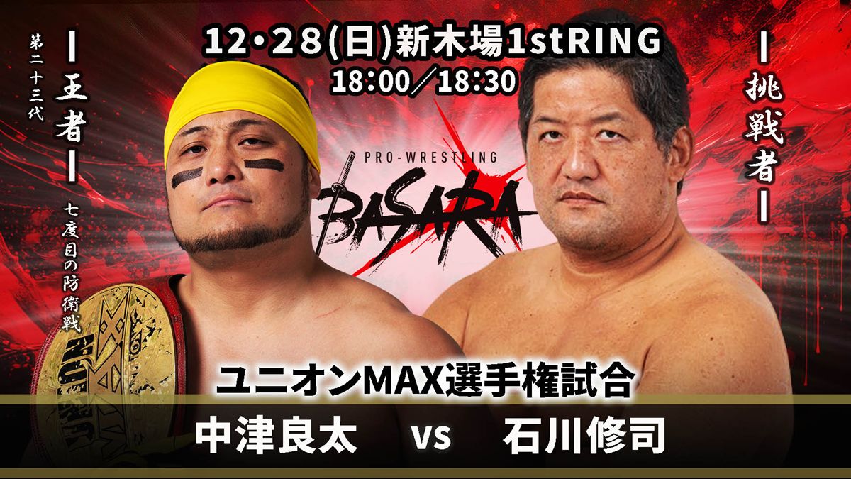 【BASARA】年末2連戦の全カード決定! 28日・ユニオンMAX戦「中津vs石川修司」、27日は真霜&本田のタッグ防衛戦&「焼肉お食事券」争奪の東西対抗戦
