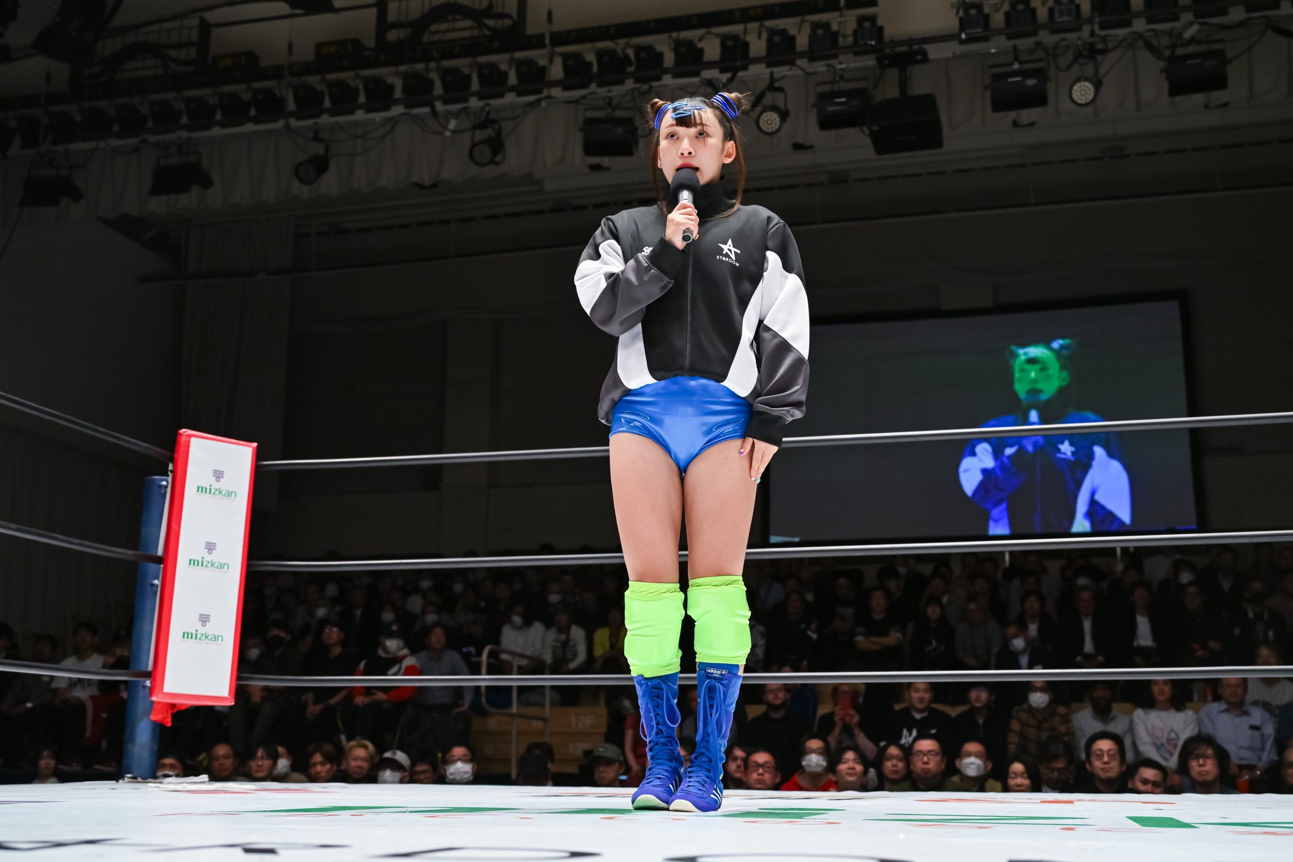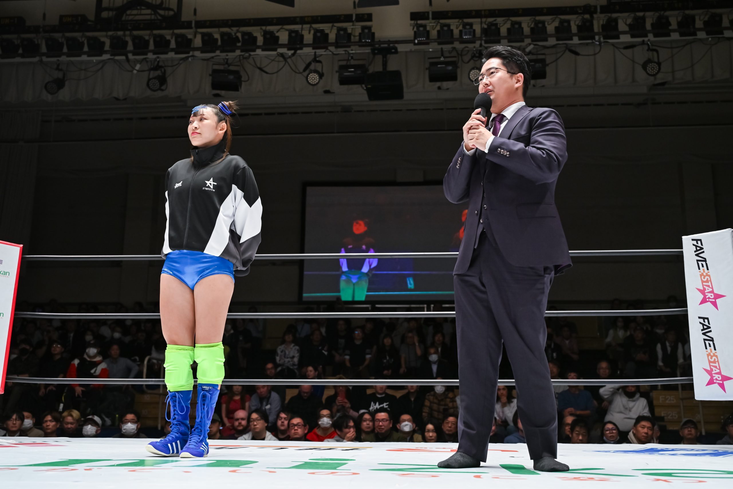 「どんなカードを組んでいくか? まず、会場では新人と同じですが、カードに関しては新人と同じではないです。というのは、彼女の試合は絶対に注目されます。プロレスラーとしては新人だし、プロレスラーとしてやるべきことはほかのみんなと一緒ですけども、彼女はすでにスター性を持っている。なので、対戦相手も選びたいし、しっかり見せられるようなマッチメークを考えたい。彼女も光るし、対戦相手も上がるようなマッチメークをしていきたいと思っています」