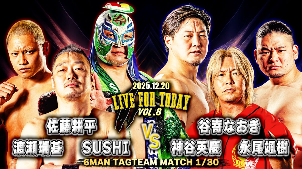 6人タッグマッチでは、佐藤耕平&SUSHI&渡瀬瑞基のトリオが、谷嵜なおき&神谷英慶&永尾颯樹組と激突。