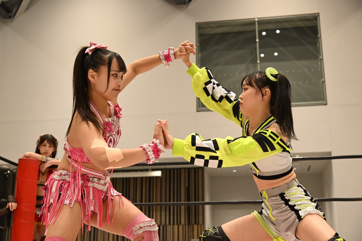 試合後、愛野は「挑戦者組、勝ったぞ! 私と鈴芽は前哨戦はもうないけど、でもあと1試合(12・27新宿)あるんだよ。あと1試合戦うってことは、私たちはまた強くなるってことだからら。イッテンヨンに向けてたくさんパワーを溜めていこう!」と勝利の雄たけび。