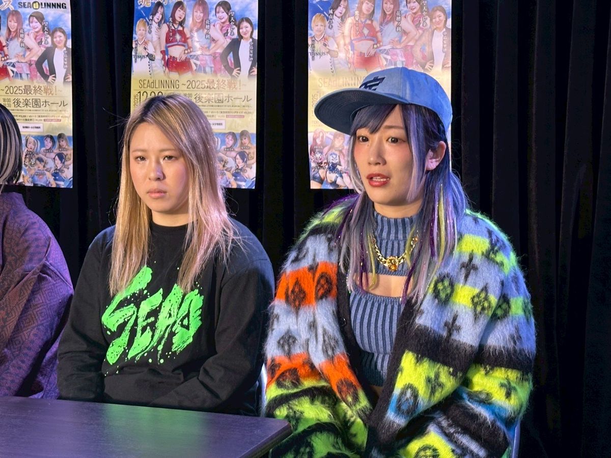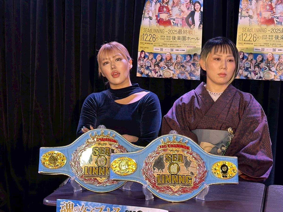 【SEAdLINNNG】12.26後楽園・年内最終戦でタッグ王者・夏&美央が「つまらん会見」をブッ壊す! 挑戦者・穂ノ利&ウナギは王座奪取へ“作文”朗読も…