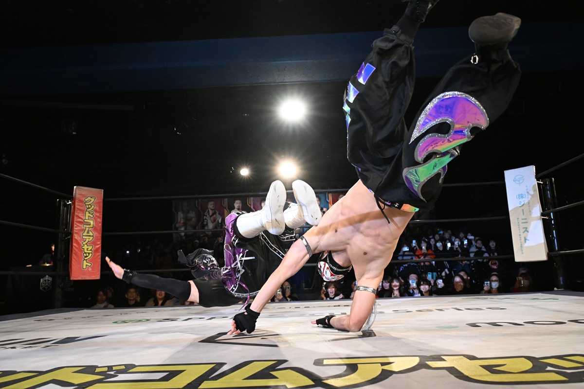 隈取は昨年12月28日の両国国技館大会でプロレスデビューし、抜群の身体能力を生かした空中殺法で白星発進。その後、6・29後楽園でイルシオンとの遺恨が勃発し、7・16新宿でのシングル戦が1度は決まっていた。だが、その一戦は隈取の負傷欠場で流れ、いったん立ち消えとなっていった。ところが、11・6新宿でイルシオンが隈取を襲撃して遺恨が再燃。12・3新宿での6人タッグ戦では反則ざんまいのイルシオンが勝利し、今大会でのシングル戦が組まれた。