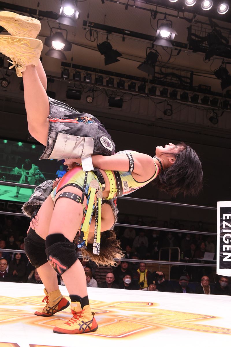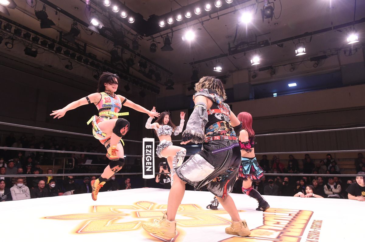 特にキャリアの浅い心希が標的となり、CHIAKIのキャノンボールやフィッシャーマンズ・スープレックス・ホールドといった大技の餌食となり、防戦一方の展開が続いた。