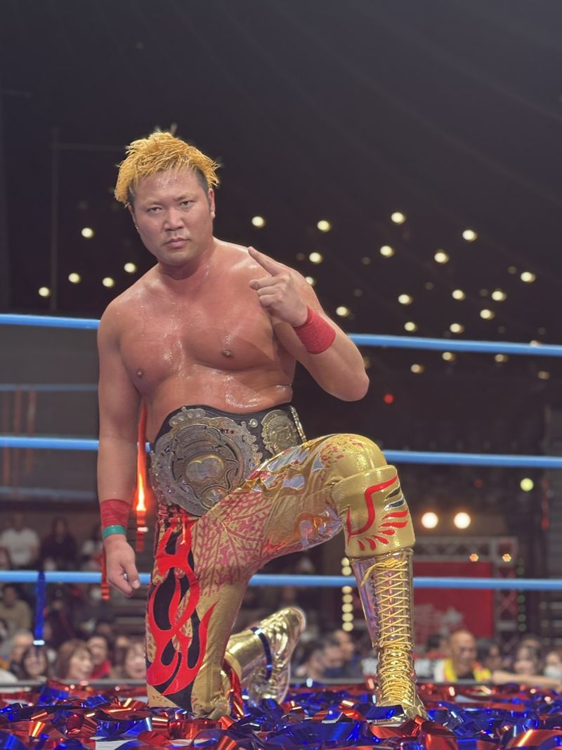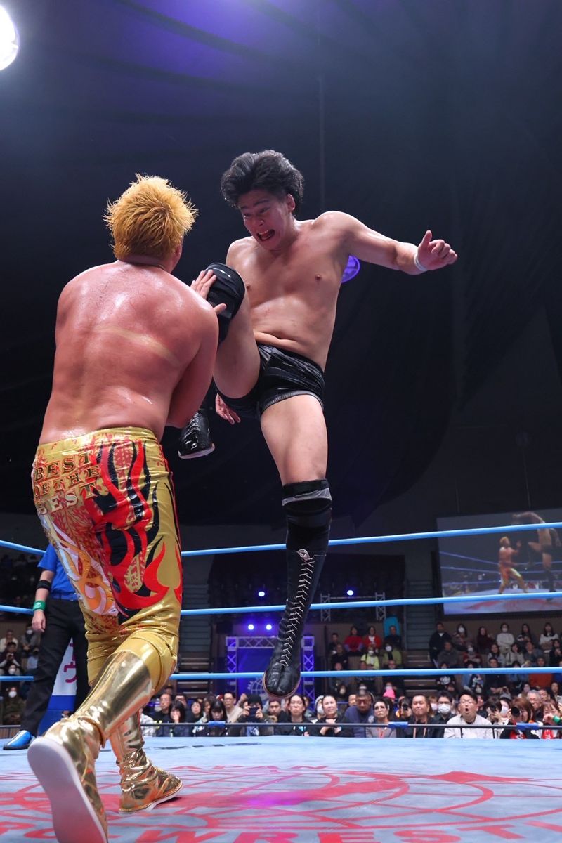 カウント2で返されたものの、王者をあと一歩のところまで追い詰める気迫を見せた。