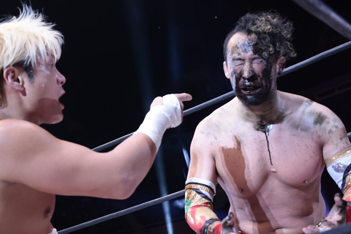 「おいBUSHI!お前、そんな勝ち方でいいのか?おい、久々に日本のリングで、そんな勝ち方でベルトを持っていいのか?俺だったら、全く嬉しくねえぞ!おい、BUSHI、そして内藤哲也!お前のやりたいプロレスは、これなのか?」