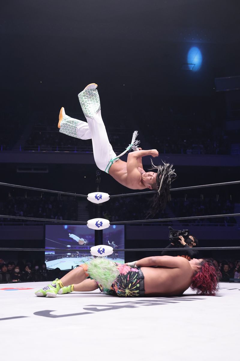 ヒロムにとって3度目の防衛戦となったこの一戦は、武道館が沸騰する熱戦となった。互いの意地がぶつかり合う攻防の末、17分24秒、AMAKUSAが必殺の「解放」を炸裂させ劇的勝利。