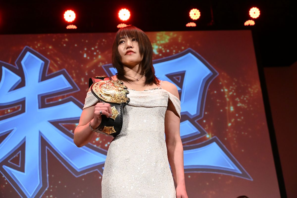 三冠王者としての防衛ロードを問われると、「新日本管轄のベルトを巻いた暁には、スターダムと新日本プロレスの『ダブル所属』になりたいと思っている」と宣言。