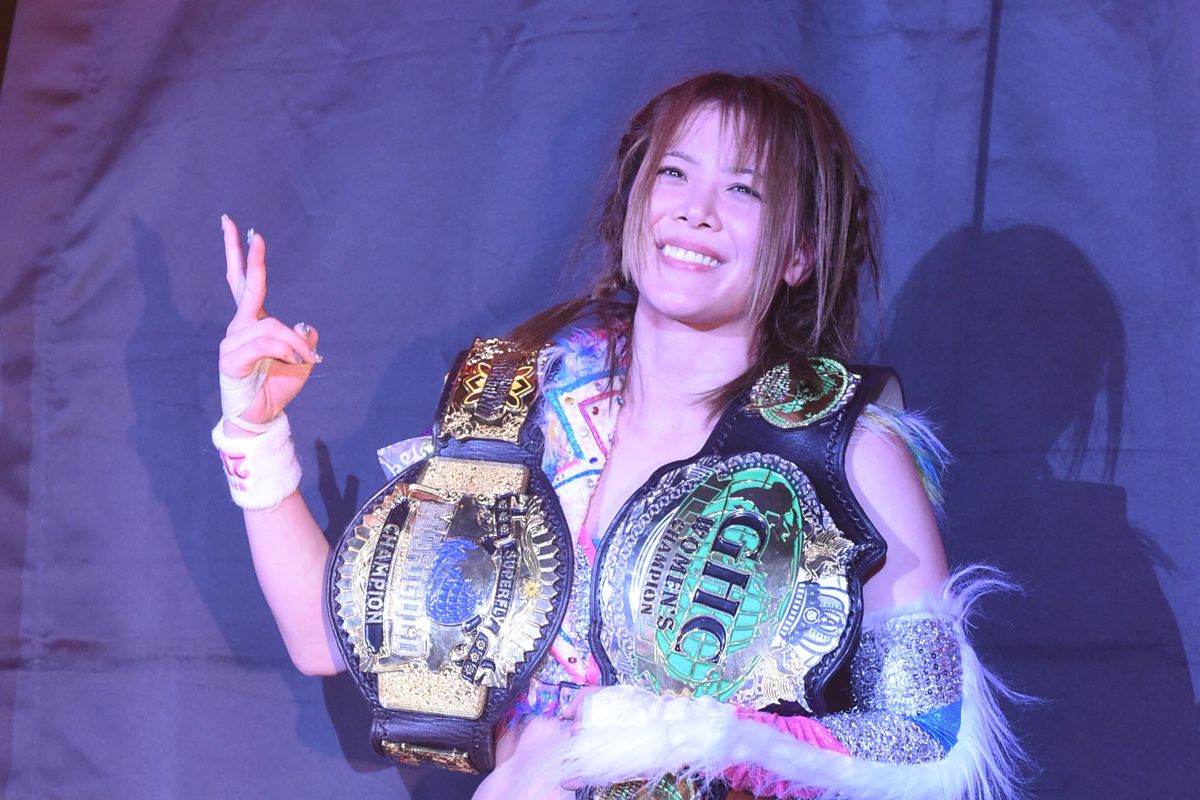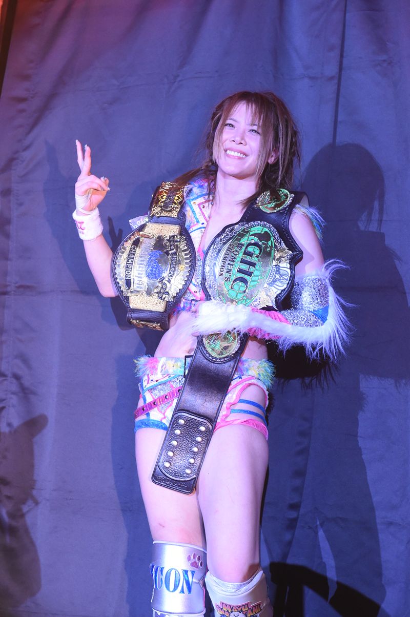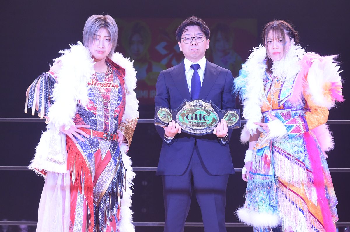「岩谷麻優がGHC獲ったぞー!史上初の女子IWGPとGHC獲った女・史上最強の、史上初の王者だー!」
