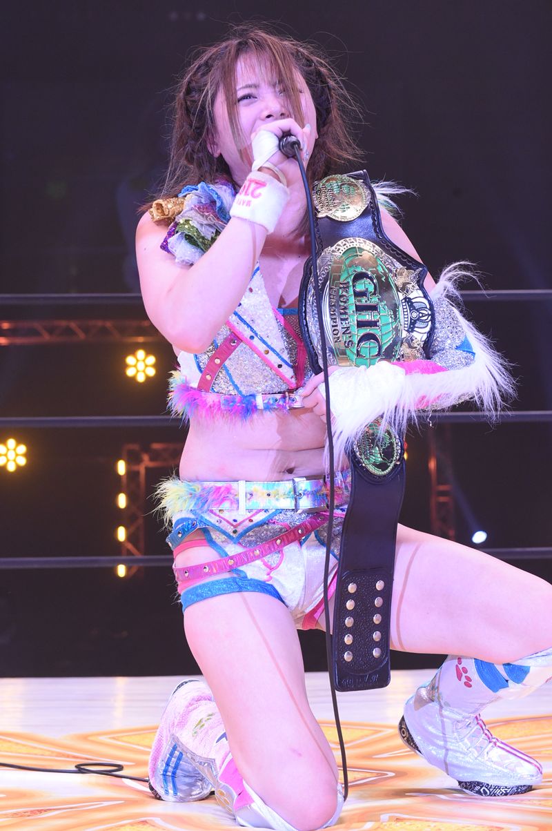 「このベルトと共に今年、プロレスラー人生15周年の岩谷麻優がこれからも女子プロレスを引っぱって行きます。みなさん、これからも付いて来てください」