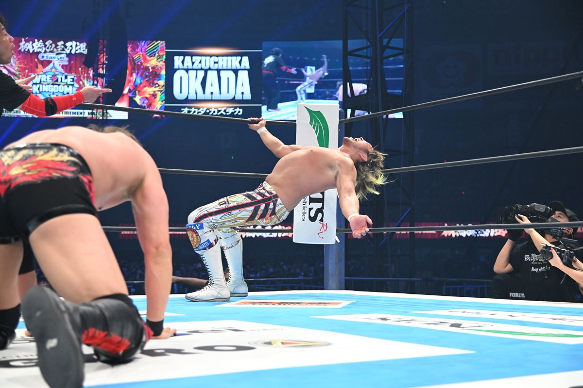 正調のハイフライフローこそオカダの膝剣山に阻まれたものの、エルボーの打ち合いでは一歩も引かず渡り合った。