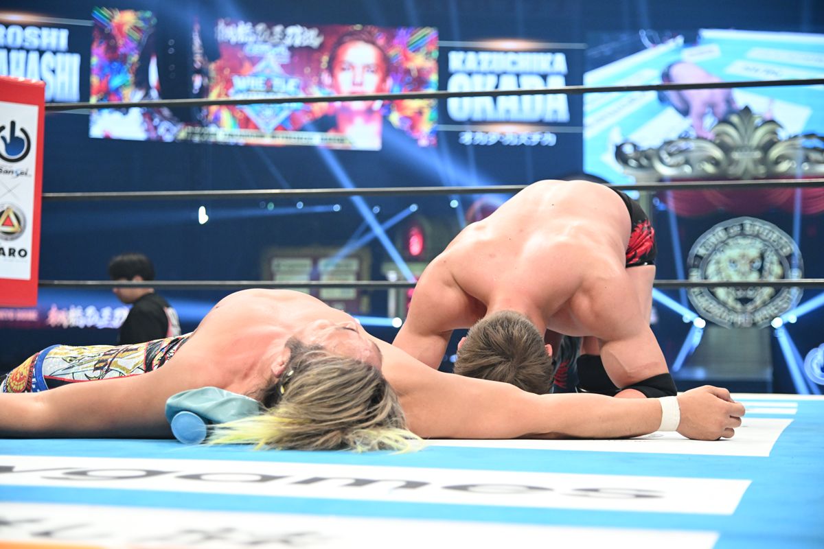 棚橋は変型エメラルドフロウジョンをキックアウトするなど、最後まで“エース”としての意地を見せつけたが、オカダは攻撃の手を緩めなかった。